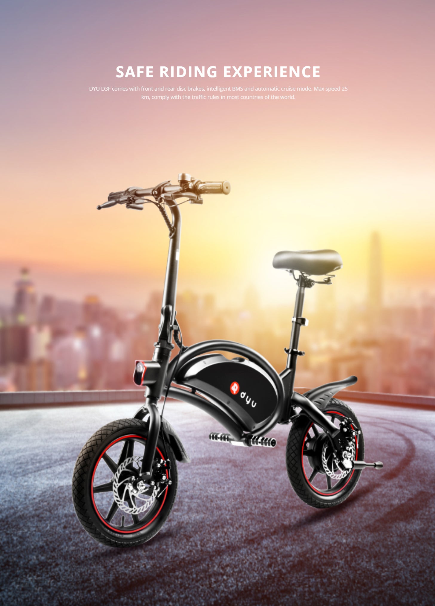 【Safe Driving Guarantee】Front and rear dual disc brakes and electronic brakes fully improve braking performance and shorten braking distance. Additionally, custom front and rear disc brakes provide extra protection while riding. Safety LED headlights and bike bells make your outing safer.