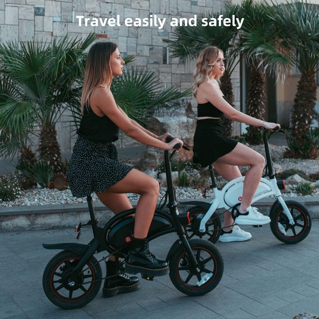 【High Quality Foldable】Aluminum-magnesium alloy body, low density, high strength, light weight and easy to carry. Electric bikes fold quickly and are easy to use and store. Maximum load is 120kg. 14-inch integrated aluminum alloy tires have better grip.