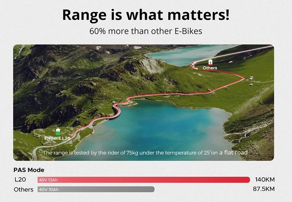 Explore the ENGWE L20 electric bike - your perfect choice in North America. With a dependable 250W motor and a high-capacity 624Wh battery, enjoy an impressive 60KM range in pure electric mode. Equipped with disc brakes and presented in sleek white color. Elevate your e-bike adventure!