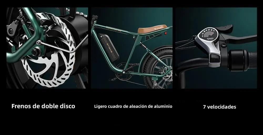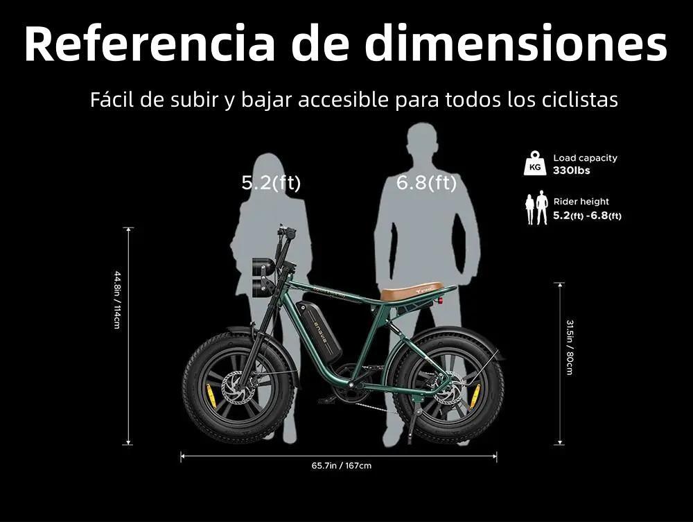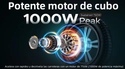 Potente motor de cubo de 48 V y 750 W (velocidad máxima: 25 km/h): el motor de cubo con engranajes de 750 W con un par máximo de 55 N.M potencia hasta 1000 W de salida máxima para ofrecer capacidades de escalada mejoradas. Puede cambiar entre el modo eléctrico puro, el modo asistido por energía y el modo de mano de obra en cualquier momento.